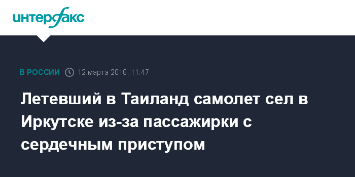 Летевший в Таиланд самолет сел в Иркутске из-за пассажирки с сердечным приступом