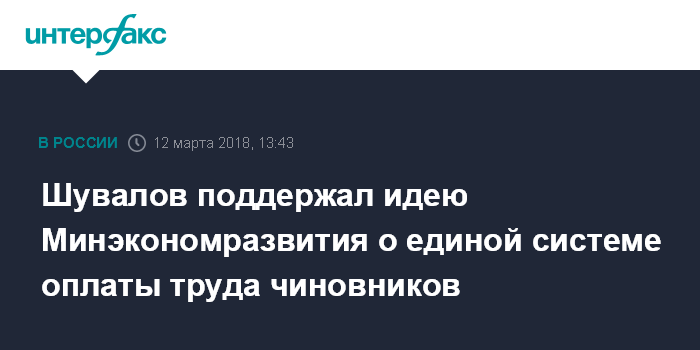 Москва. 12 марта. INTERFAX.RU - Первый вице-премьер РФ Игорь Шувалов поддерживает предложение Минэкономразвития об унификации система оплаты труда госслужащих в министерствах и ведомствах.