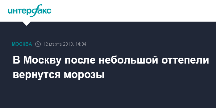 Москва. 12 марта. INTERFAX.RU - В первой половине этой недели по ночам в Москве ожидается минусовая температура, но днем она будет повышаться до плюсовых значений. Тем не менее во второй половине недели зимний характер погоды вернется, говорится в сообщении Гидрометцентра России, поступившем в "Интерфакс".