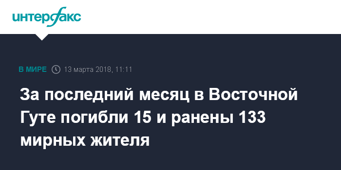 За последний месяц в Восточной Гуте погибли 15 и ранены 133 мирных жителя