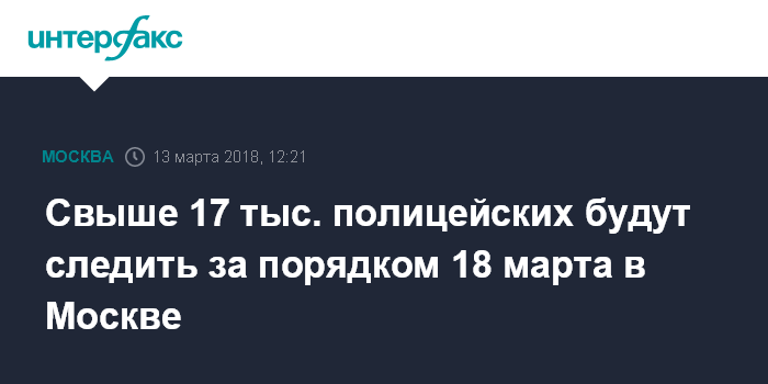 Свыше 17 тыс. полицейских будут следить за порядком 18 марта в Москве
