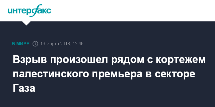 Москва. 13 марта. INTERFAX.RU - В секторе Газа произошел взрыв рядом с кортежем палестинского премьер-министра Рами Хамдаллы, пишет во вторник израильская газета Haaretz.