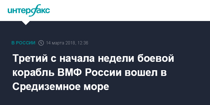 Третий с начала недели боевой корабль ВМФ России вошел в Средиземное море