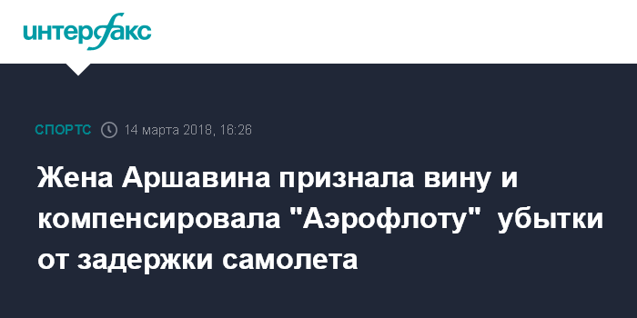"После инцидента с Аршавиной в начале января "Аэрофлот" принял решение о взыскании убытков в судебном порядке и 25 января 2018 года подал исковое заявление. Под давлением предъявленных доказательств, еще до рассмотрения дела судом, пассажирка в полном объеме возместила расходы компании. Денежные средства уже поступили на счет "Аэрофлота". Тем самым Аршавина признала свою вину", - заявил заместитель генерального директора "Аэрофлота" по правовым и имущественным вопросам Владимир Александров.