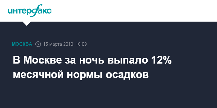 Москва. 15 марта. INTERFAX.RU - По данным базовой столичной метеостанции на ВДНХ, за ночь в Москве выпало 4 мм осадков, сообщили "Интерфаксу" в Гидрометцентре России в четверг.