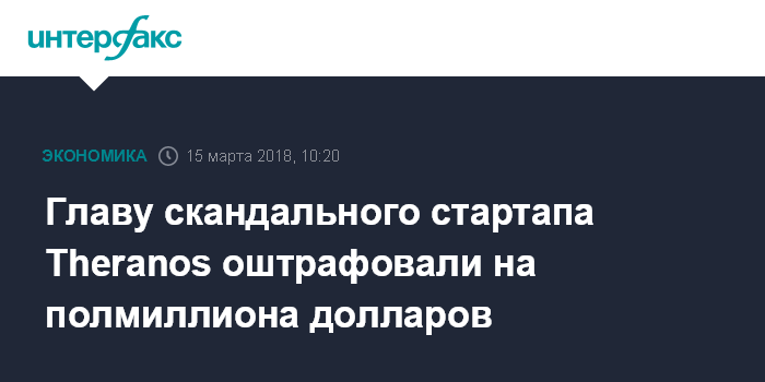 Главу скандального стартапа Theranos оштрафовали на полмиллиона долларов