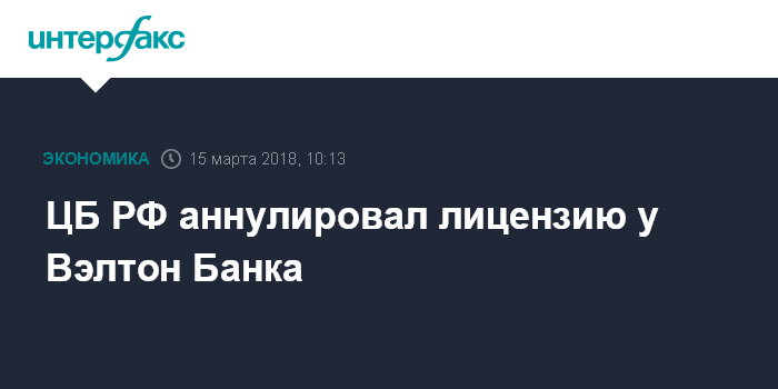ЦБ РФ аннулировал лицензию у Вэлтон Банка
