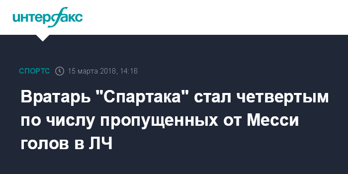 Вратарь "Спартака" стал четвертым по числу пропущенных от Месси голов в ЛЧ