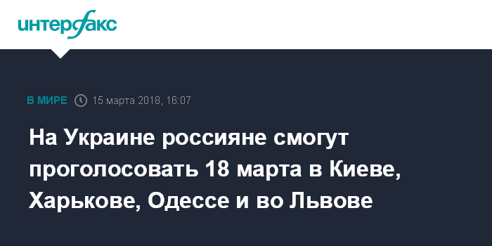 На Украине россияне смогут проголосовать 18 марта в Киеве, Харькове, Одессе и во Львове