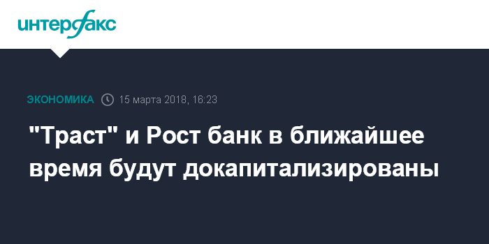 "Траст" и Рост банк в ближайшее время будут докапитализированы