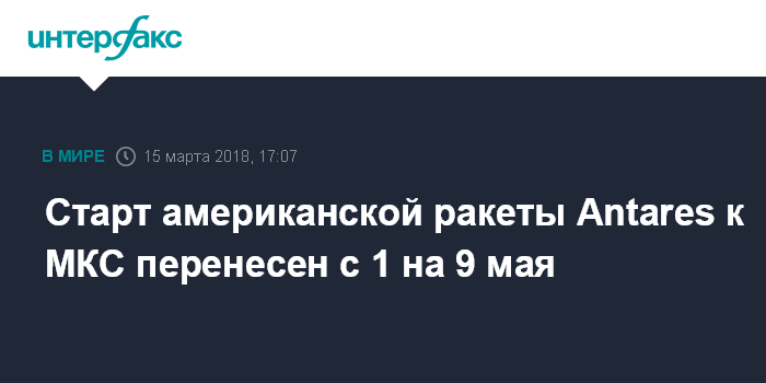 Старт американской ракеты Antares к МКС перенесен с 1 на 9 мая
