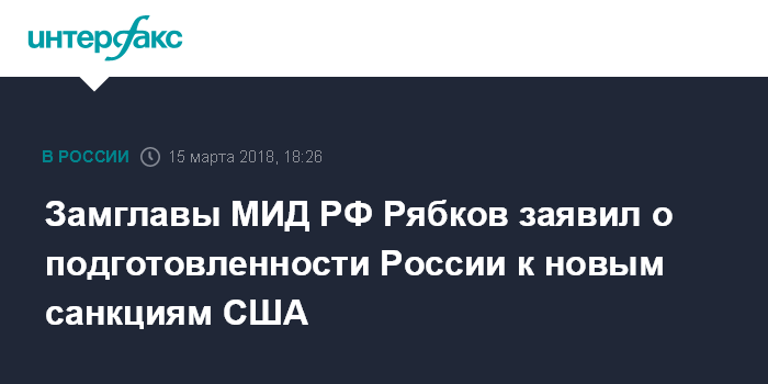 Москва. 15 марта. INTERFAX.RU - В Москве были готовы к введению новых ограничительных мер со стороны Вашингтона и считают, что оснований для них не может быть, заявил в четверг замглавы МИД РФ Сергей Рябков.