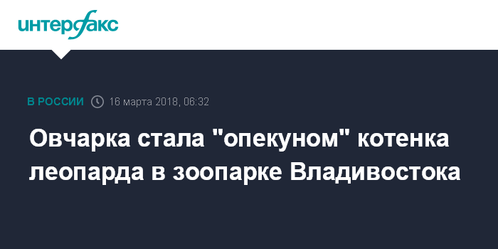 Москва. 16 марта. INTERFAX.RU - "Опекуном" котенка персидского леопарда в зоопарке Владивостока стала среднеазиатская овчарка.
