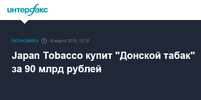 Japan Tobacco купит "Донской табак" за 90 млрд рублей