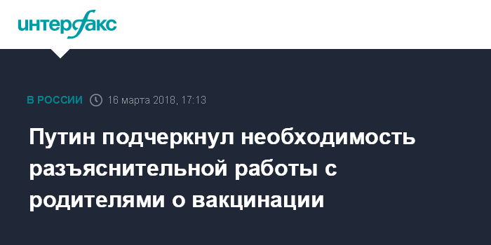 Москва. 16 марта. INTERFAX.RU - Вопрос обязательной вакцинации детей и взрослых подлежит обсуждению, заявил президент РФ Владимир Путин.