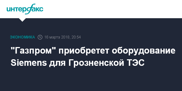 "Газпром" приобретет оборудование Siemens для Грозненской ТЭС
