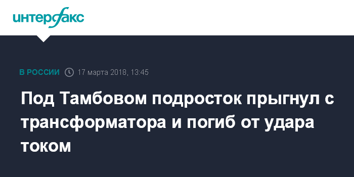Москва. 17 марта. INTERFAX.RU - Организована доследственная проверка по факту гибели подростка, прыгавшего с крыши трансформатора в Инжавинском районе Тамбовской области, сообщает пресс-служба следственного управления СКР по региону.