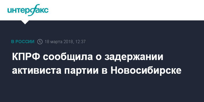 Москва. 18 марта. INTERFAX.RU - Новосибирский областной комитет КПРФ сообщает о задержании сторонника партии на избирательном участке в школе №177, говорится в сообщении на сайте обкома.