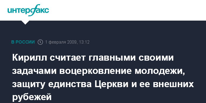 Кирилл считает главными своими задачами воцерковление молодежи, защиту единства Церкви и ее внешних рубежей