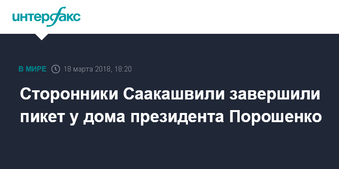 Москва. 18 марта. INTERFAX.RU - Группа активистов из числа сторонников лидера "Руха новых сил" Михаила Саакашвили завершила свою акцию перед домом президента Украины Петра Порошенко в поселке городского типа Козин Обуховского района Киевской области в воскресенье.