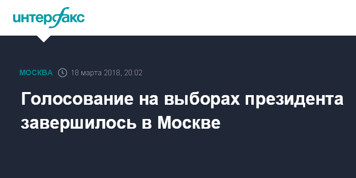 Москва. 18 марта. INTERFAX.RU - В Москве в 20:00 воскресенья завершилось голосование по выборам президента РФ, и члены участковых избирательных комиссий приступили к подсчёту голосов.