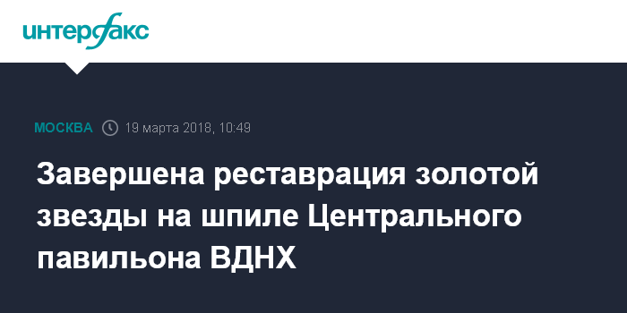 Москва. 19 марта. INTERFAX.RU - Завершилась реставрация одного из символов ВДНХ - золотой звезды на шпиле Центрального павильона, сообщает в понедельник сайт столичной мэрии.