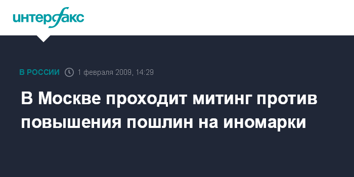 Москва. 1 февраля. INTERFAX.RU - Митинг протеста против повышения таможенных пошлин на ввоз подержанных иномарок начинается в эти минуты в Москве на Болотной площади, сообщил лидер московского отделения Федерации автовладельцев России (ФАР) Сергей Канаев.