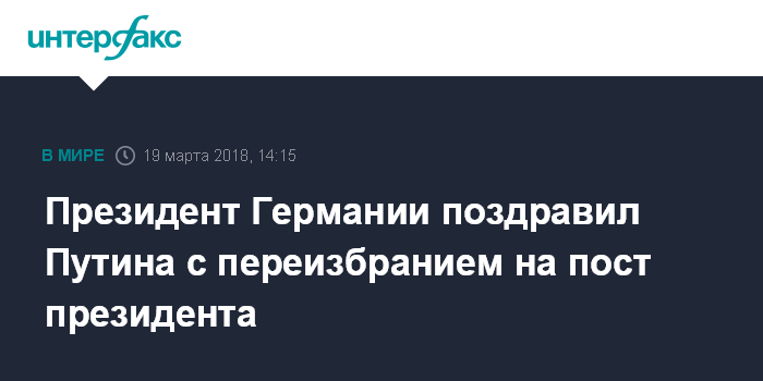 Москва. 19 марта. INTERFAX.RU - Президент ФРГ Франк-Вальтер Штайнмайер поздравил Владимира Путина с переизбранием на пост президента России.