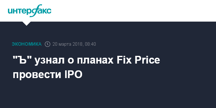 Москва. 20 марта. INTERFAX.RU - Владельцы сети магазинов фиксированных цен Fix Price задумались о привлечении капитала для развития, пишет газета "Коммерсантъ".