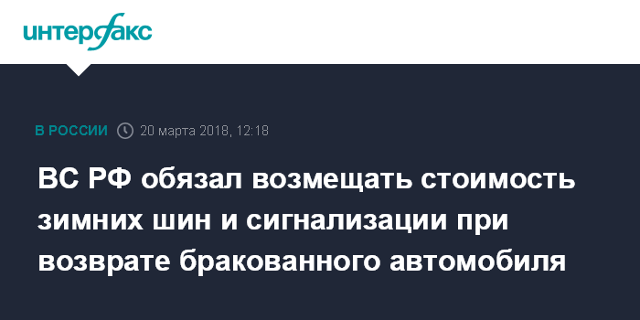 ВС РФ обязал возмещать стоимость зимних шин и сигнализации при возврате бракованного автомобиля