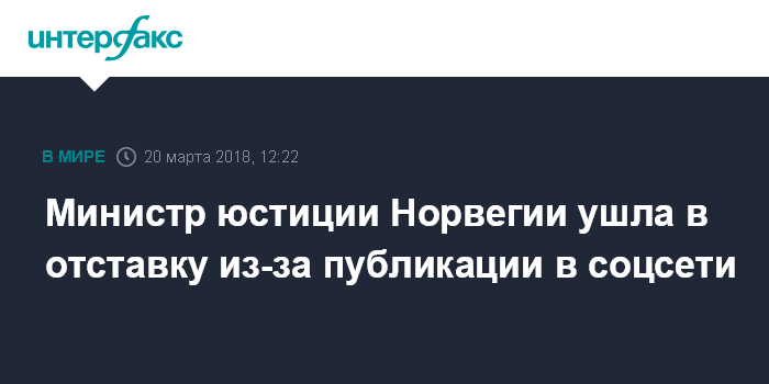 Министр юстиции Норвегии ушла в отставку из-за публикации в соцсети