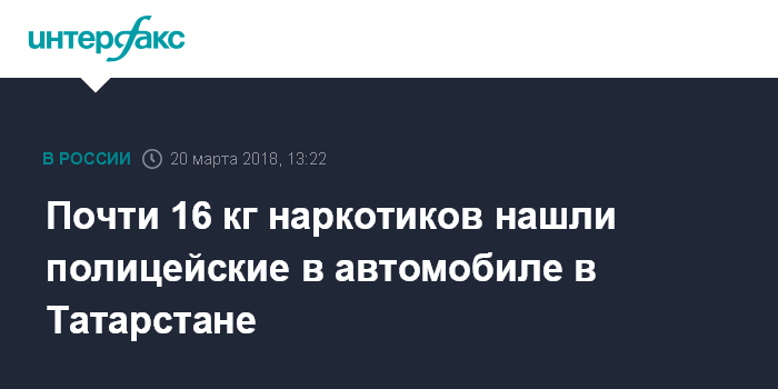 Москва. 20 марта. INTERFAX.RU - Полицейские в Татарстане во время проверки одного из автомобилей на посту обнаружили в его багажнике почти 16 килограммов наркотиков, сообщает пресс-служба МВД региона во вторник.