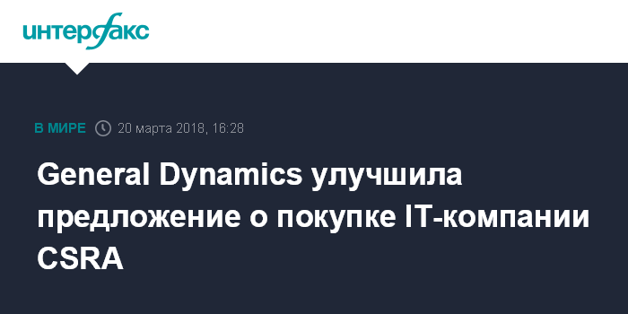 General Dynamics улучшила предложение о покупке IT-компании CSRA