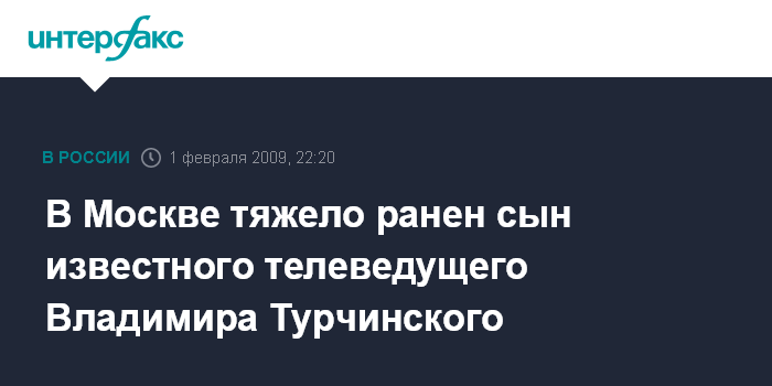 Москва. 1 февраля. ИНТЕРФАКС-МОСКВА - В Москве в Северо-Восточном административном округе совершено нападение на сына известного российского телеведущего и культуриста Владимира Турчинского Илью.
