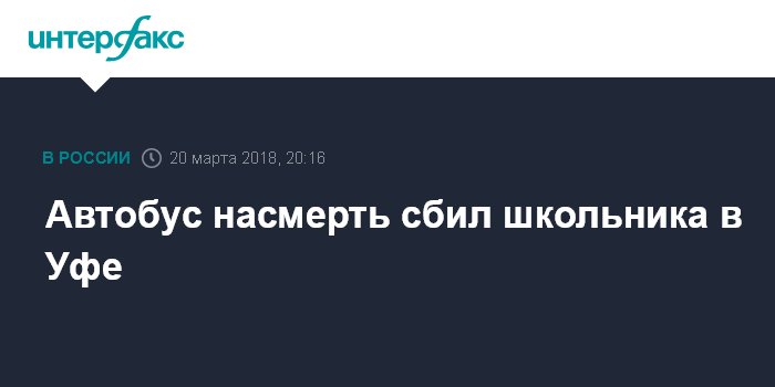 Москва. 20 марта. INTERFAX.RU - Школьник погиб под колесами маршрутного автобуса в Уфе, сообщила пресс-служба УГИБДД по Башкирии во вторник.