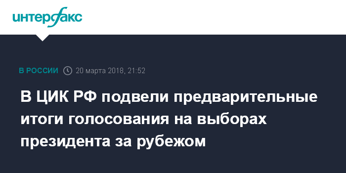 В ЦИК РФ подвели предварительные итоги голосования на выборах президента за рубежом