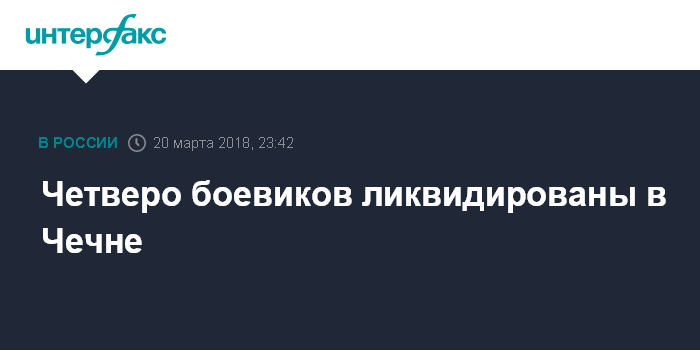 Москва. 20 марта. INTERFAX.RU - Четверо боевиков ликвидированы в Чечне, пострадавших среди сотрудников правоохранительных органов нет, сообщили "Интерфаксу" в пресс-службе МВД Чеченской республики.