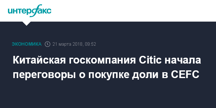 Китайская госкомпания Citic начала переговоры о покупке доли в CEFC