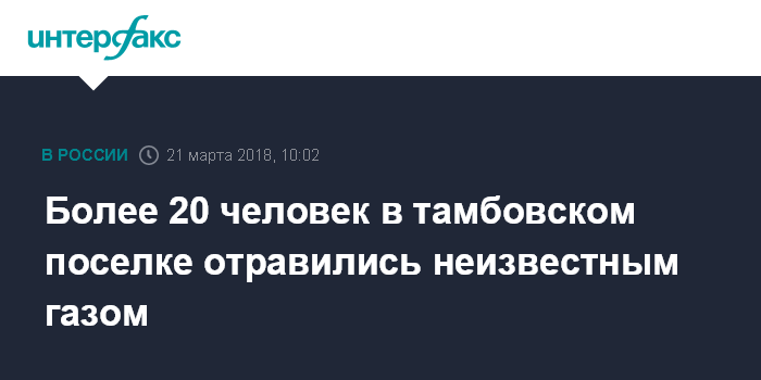 Москва. 21 марта. INTERFAX.RU - В поселке Калиничи Тамбовской области 22 человека отравились неизвестным газом, сообщили "Интерфаксу" в экстренных службах региона.