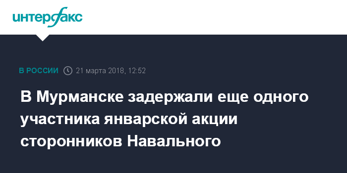 Москва. 21 марта. INTERFAX.RU - В Мурманске продолжились задержания участников акции сторонников Алексея Навального 28 января, сообщил местный штаб оппозиционера в социальных сетях в среду.