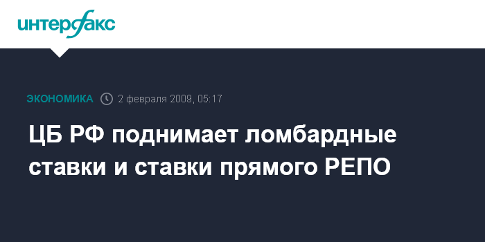 ЦБ РФ поднимает ломбардные ставки и ставки прямого РЕПО