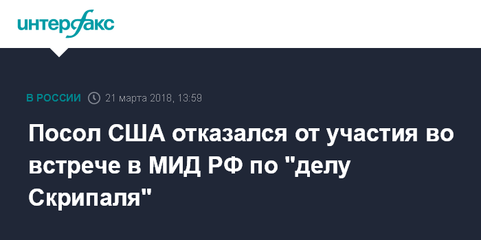 Посол США отказался от участия во встрече в МИД РФ по "делу Скрипаля"