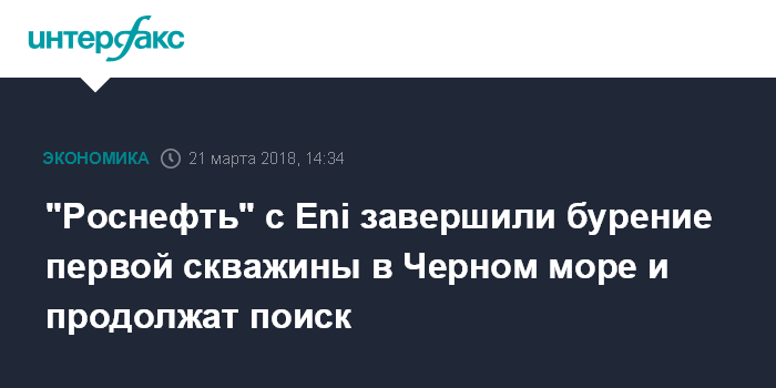 "Роснефть" с Eni завершили бурение первой скважины в Черном море и продолжат поиск