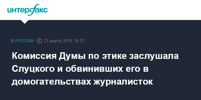 Москва. 21 марта. INTERFAX.RU - Думская комиссия по этике в среду заслушала в рамках обсуждения "дела о домогательствах" главы комитета по международным делам Леонида Слуцкого обвинивших его в этом журналисток Дарью Жук ("Дождь") и Фариду Рустамову ("Русская служба Би-би-си"), а так же самого депутата. Заседание проходит в закрытом режиме.