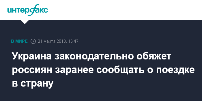 Украина законодательно обяжет россиян заранее сообщать о поездке в страну