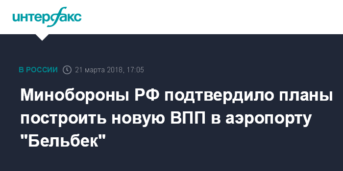 Москва. 21 марта. INTERFAX.RU - Новая взлетно-посадочная полоса (ВПП) аэропорта "Бельбек" (Севастополь) будет готова до конца текущего года, сообщил заместитель главы Минобороны РФ Тимур Иванов.