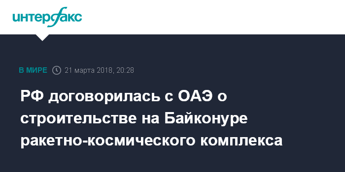 РФ договорилась с ОАЭ о строительстве на Байконуре ракетно-космического комплекса