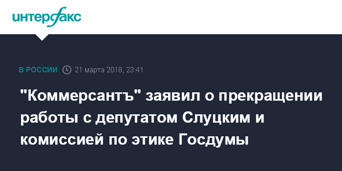 "Коммерсантъ" заявил о прекращении работы с депутатом Слуцким и комиссией по этике Госдумы