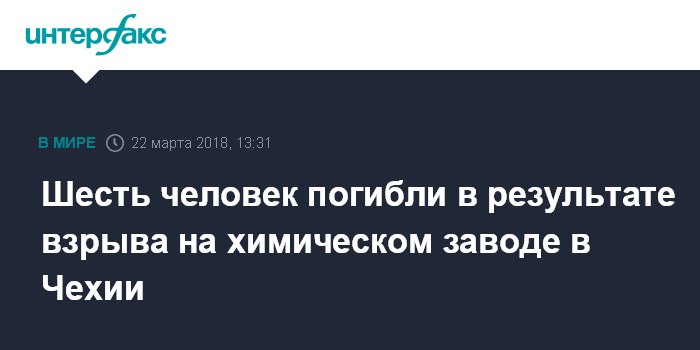 Москва. 22 марта. INTERFAX.RU - Взрыв произошел на химической фабрике в Чехии, сообщает Associated Press.