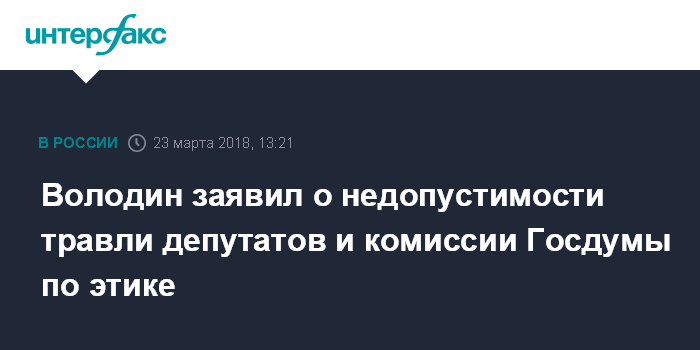 Володин заявил о недопустимости травли депутатов и комиссии Госдумы по этике